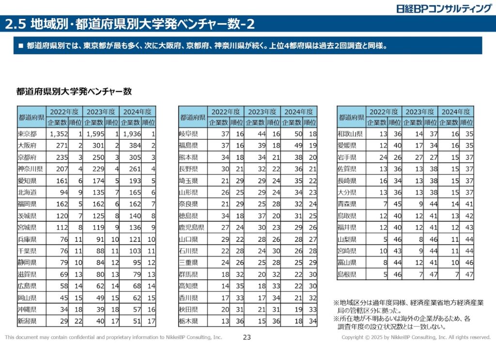さらに注目すべきは、大学発ベンチャーが生まれている地域です。