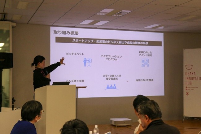 大阪産業局 佐藤愛さん(以下、佐藤) 大阪産業局は、大阪の中小事業者や起業家を支援する団体で、創業支援や販路開拓支援、海外展開支援などを通じて、地域経済の活性化に貢献するべく活動をしています。その中で、私たちスタートアップ支援事業部は、『大阪イノベーションハブ(OIH)』を拠点に、国内外のネットワークを構築し、世界中から人材・資金・情報を呼び込むとともに、新たな価値創造や革新的ビジネスに果敢に挑戦するスタートアップを次々と生み出し、その成長の加速化や世界への飛躍につなげていくために、アクセラレーションプログラムやピッチイベント、企業の課題に合わせたハンズオン支援など様々な取り組みを実施しています。