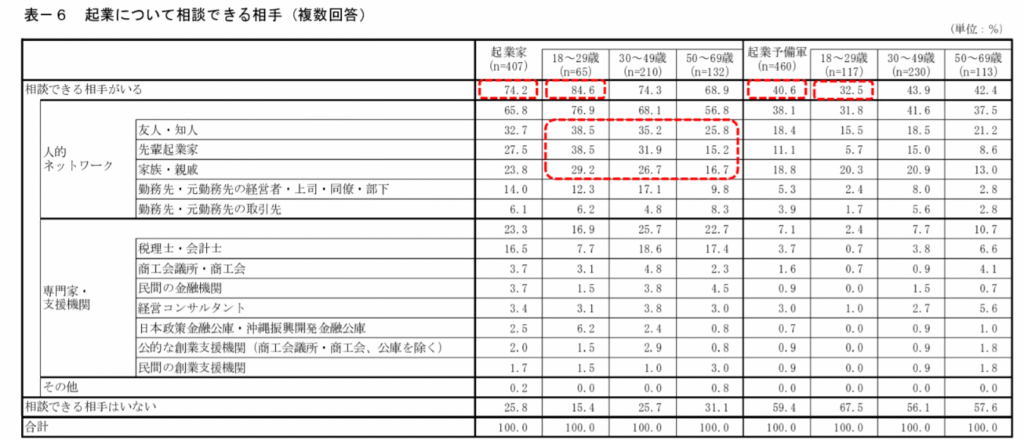 ●「起業の相談相手がいない」若者が多い