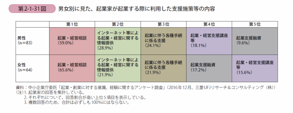 起業支援策のうち、起業相談は最もニーズが高い。(2017年版「中小企業白書」P131)