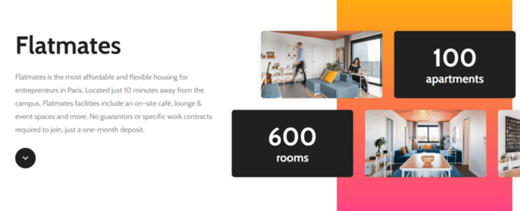 フランス国外の人や金銭的な課題を抱える人向けに提供されており、保証人や特定の労働契約は必要なく、1ヶ月分のデポジット(€499~)があればスーツケース1つで入居できます。パリは家賃が高いことで有名で、労働契約と保証人がいなければ家を見つけることは困難を極めるので、上述した起業家にとっては最初のチャレンジをサポートしてくれるサービスとなっています。