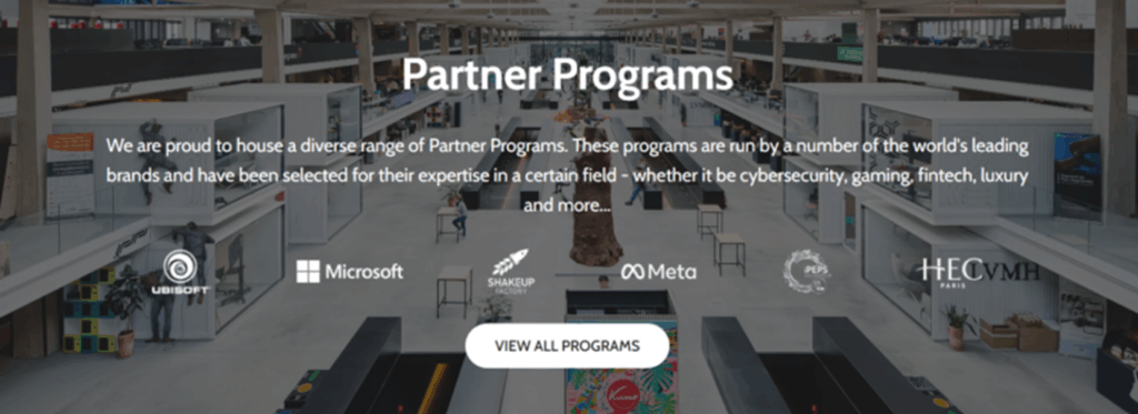 MicrosoftやMetaなどの世界的なテック企業もスタートアップ支援のために入居しています。特に、フランスを代表するラグジュアリーブランドでルイ・ヴィトン等を傘下に持つLVMHグループも拠点を設け、スタートアップとのオープンイノベーション創出に向けて積極的に活動しており、常に注目を浴びています。