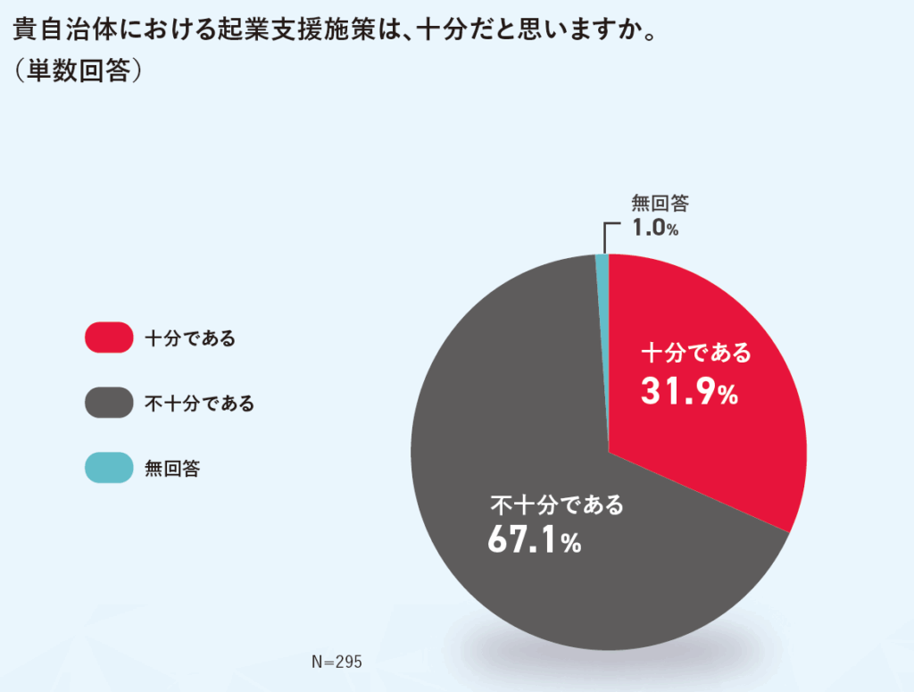 「起業支援策が十分である」とは、回答した担当者が「成果が出始めている」と実感している状態でしょう。