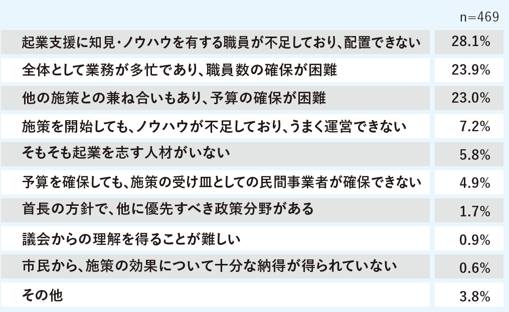 3分の2の自治体で「起業支援策が不十分である」とする原因は何でしょう。