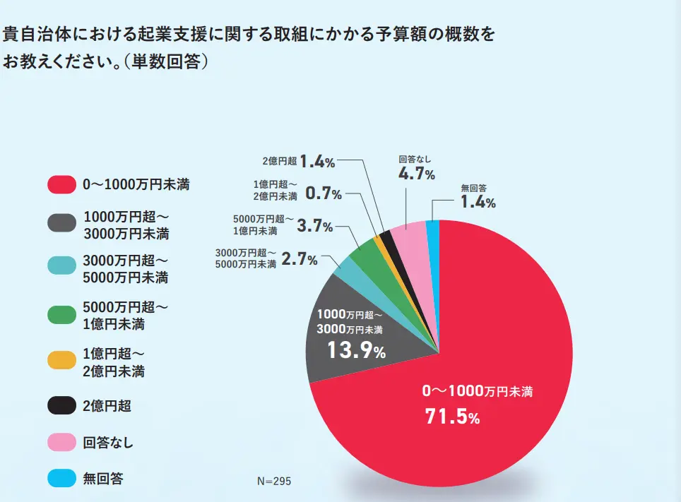 一方、人口が50万人までの中規模~小規模な自治体では創業支援の予算額が「0〜1000万円未満」が71.5%と最多(図6)であり、好循環を生み出すことが難しい状況です。限られた予算で効果的な支援策を展開することが求められていますが、支援の質・量の両面で大都市との格差が広がっています。