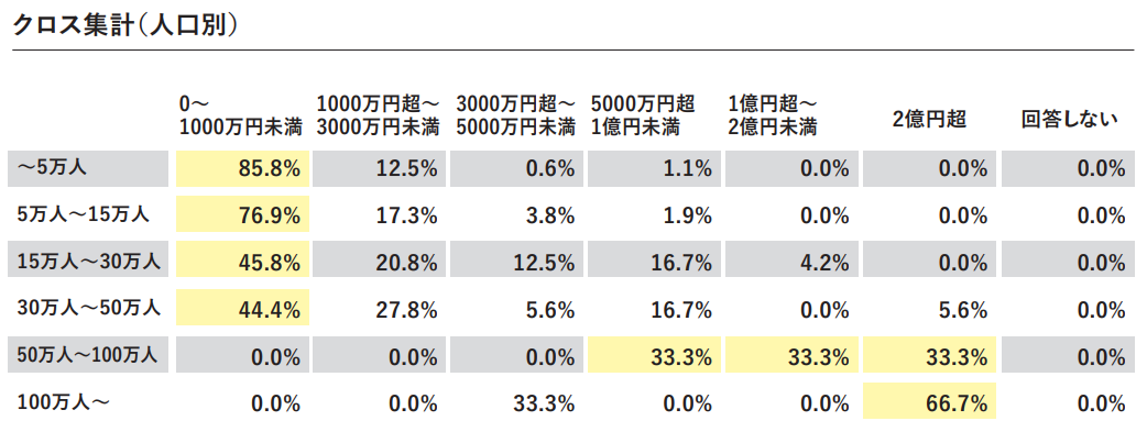 図7 起業支援白書 問6 クロス集計(人口別)「起業支援に係る予算額の概数」